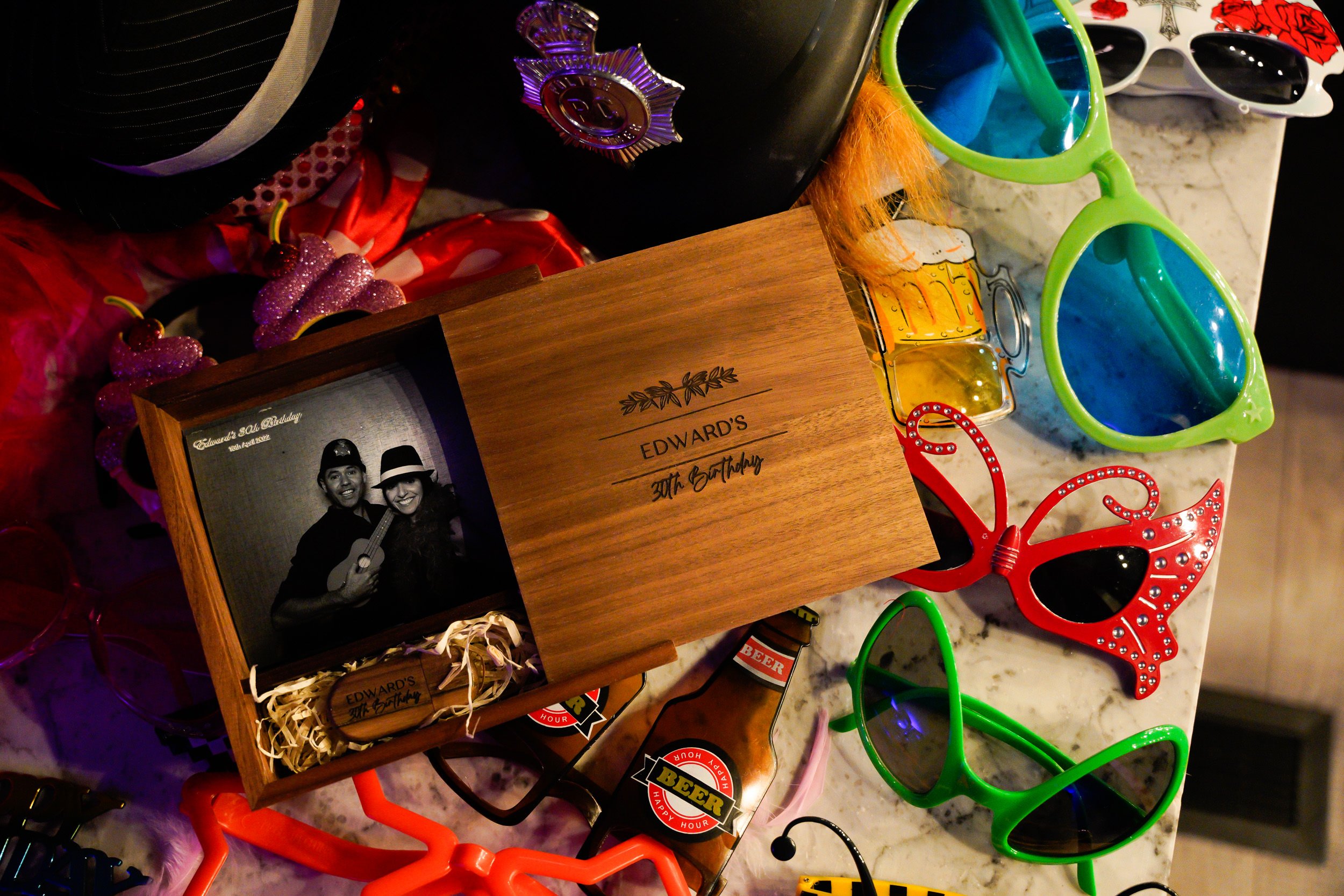Our collection of high-quality props adds extra fun and personality to every photo. We can even customise props to complement your event’s unique theme.